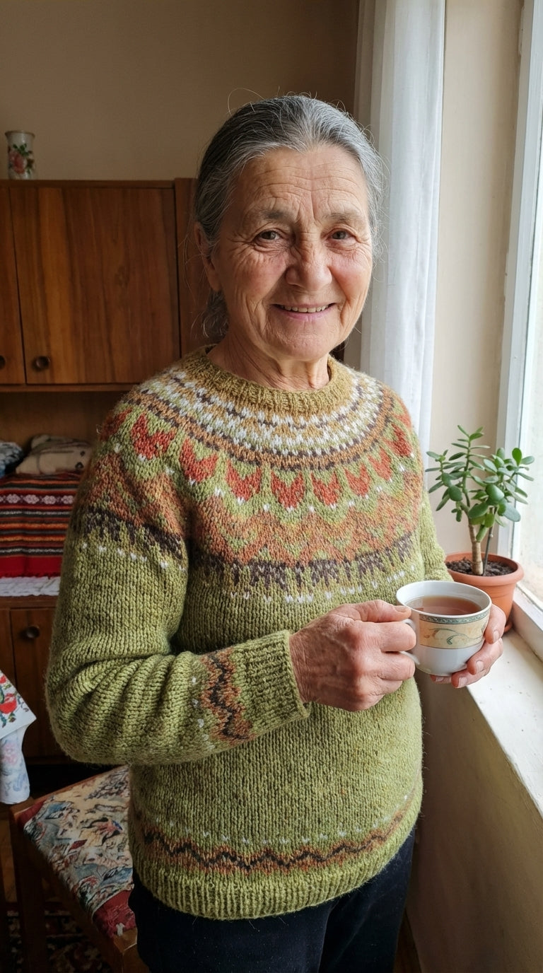 Az Ardent pulóver a meleg, természetes színeket a hagyományos skandináv mintákkal ötvözi, így jellegzetes és kényelmes téli stílust teremt. A puha zöld kötött anyag remek meleget biztosít a hideg napokon, és szépen alkalmazkodik az alakhoz. A narancssárga, barna és földszínek gazdag palettája hitelességet és rusztikus bájt kölcsönöz.